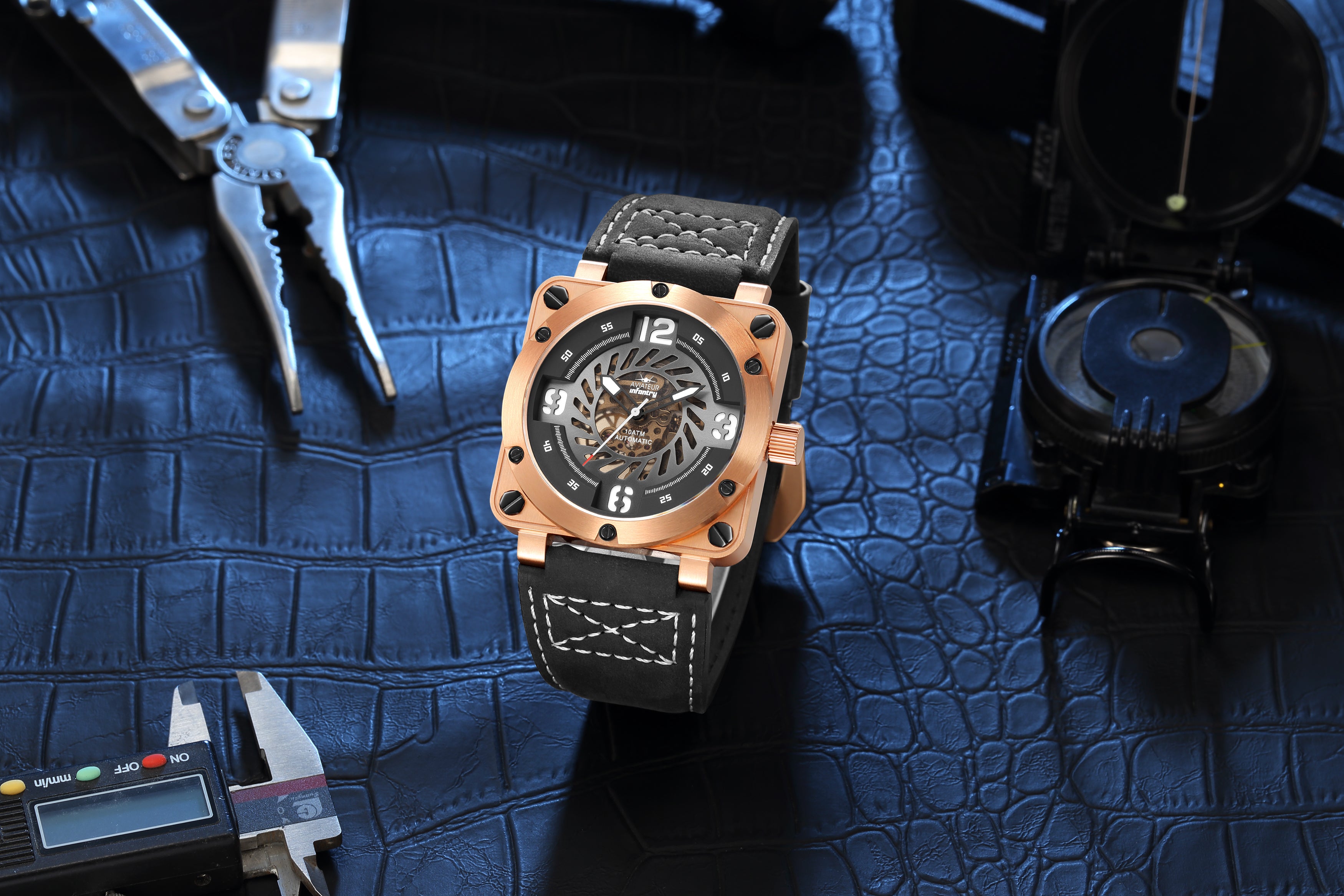 Experience sophistication with our watch, featuring a Miyota 8N24 automatic movement. Crafted with a stainless steel case coated in PVD and sapphire crystal top, it exudes durability and elegance. With 100 meters water resistance, suitable for surface swimming and snorkeling.